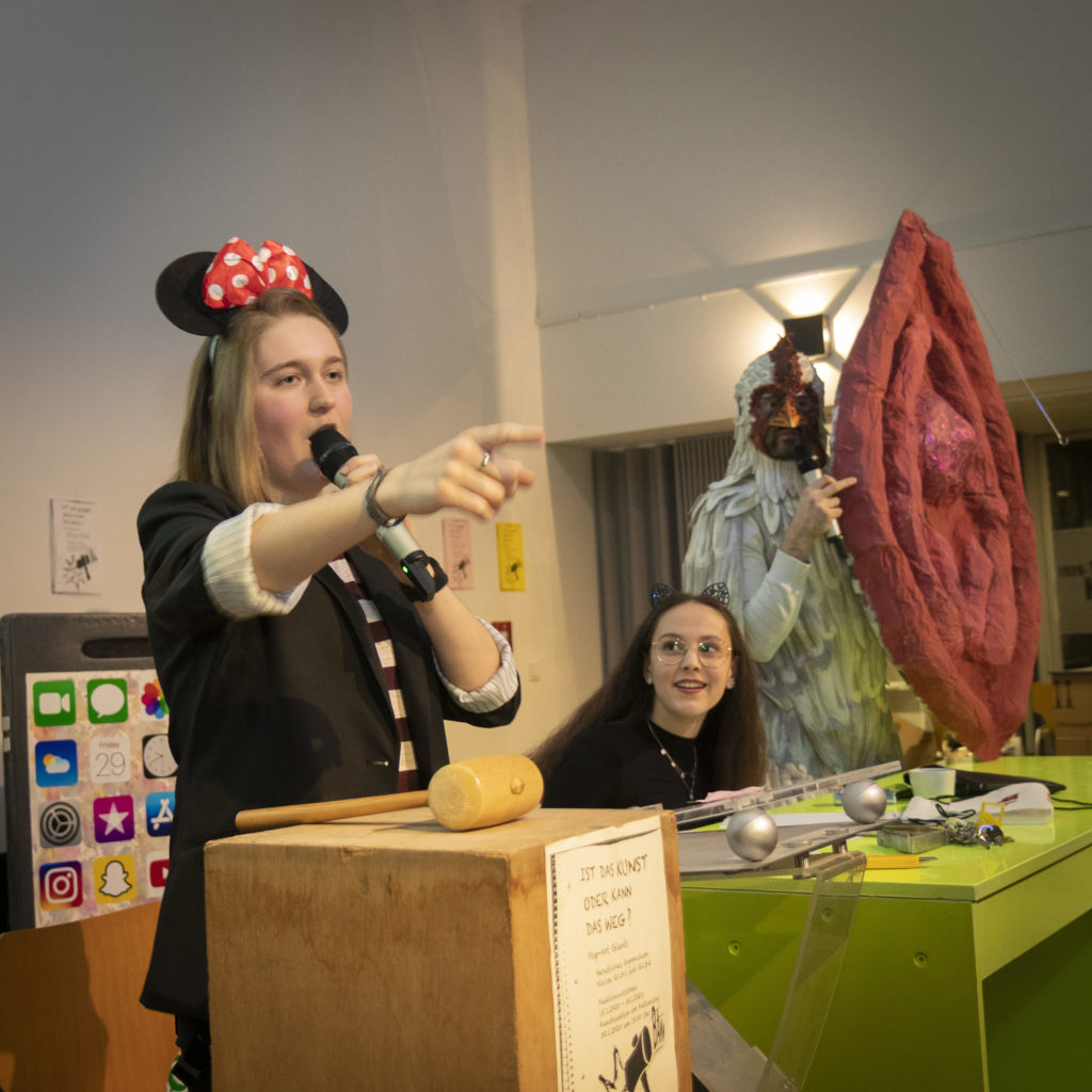Beim letzten Aktionstag zum Thema „Sprachgestalten“ haben die Schüler*innen der G13-1 und G13-2 Giant-objects im Pop-Art-Stil im Kunstunterricht gestaltet. Zum ersten Mal wurde eine Kunstauktion veranstaltet, bei der Schüler*innen der G13 mit Herrn Rachl das Auktionsteam bildeten.