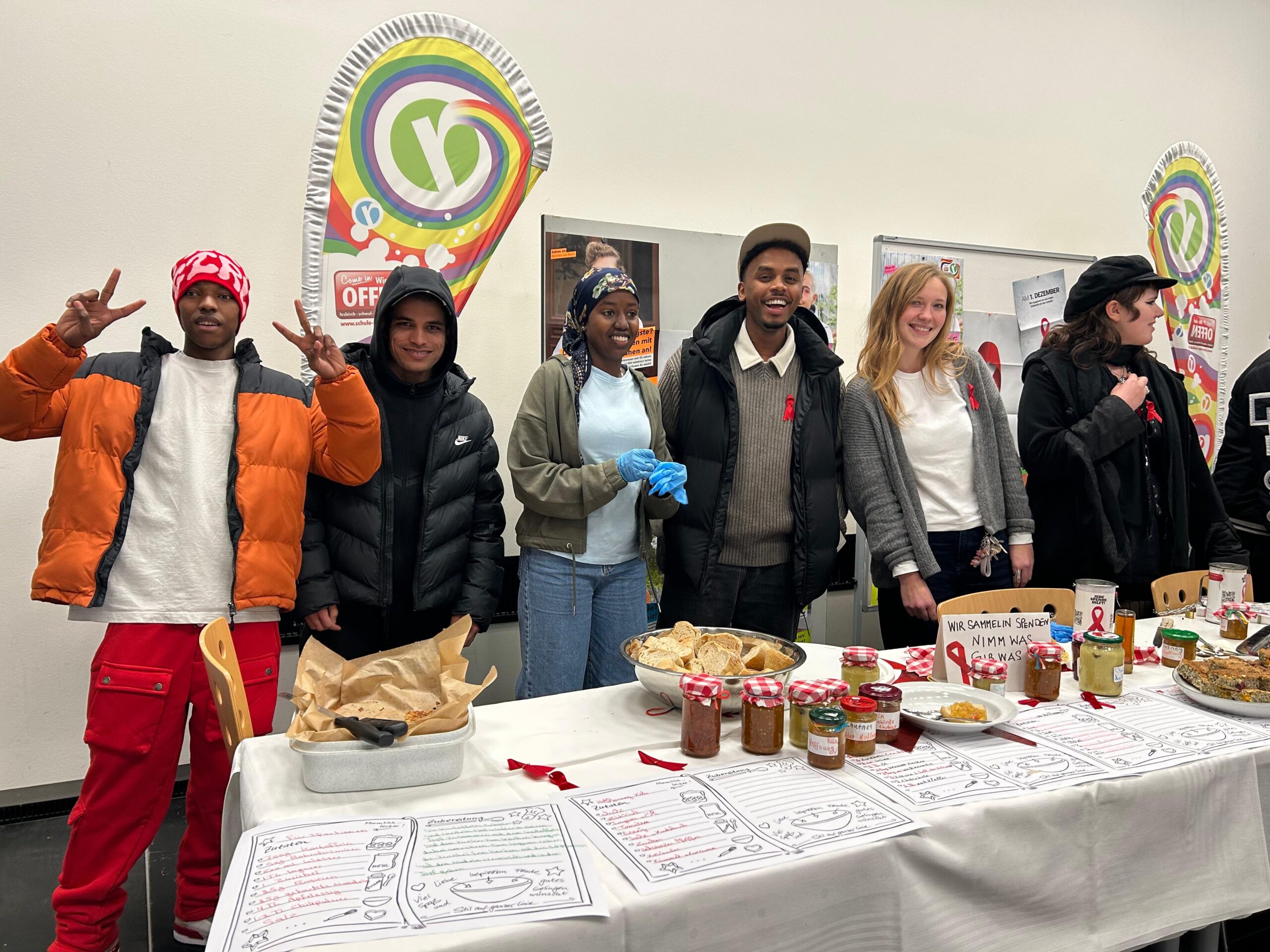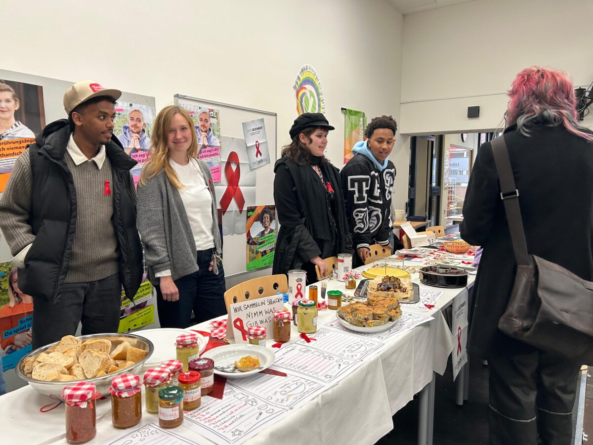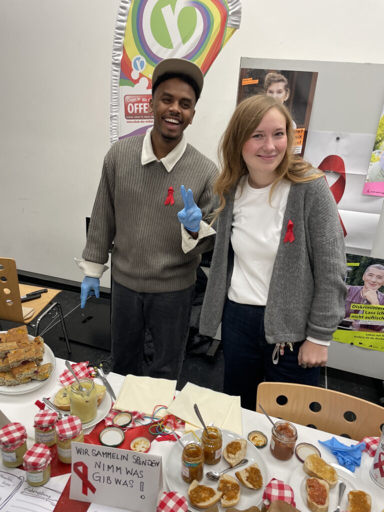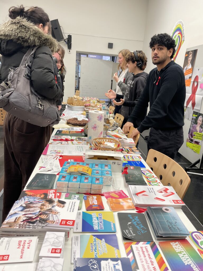 Das Team Schule-der-Vielfalt hat wieder zusammen mit der SV einen Info- und Aktionsstand aufgebaut. Neben einer Vielzahl von Infomaterialien rund um das Thema HIV und Aids haben wir auch rote Schleifen und Kondome verteilt. Nach wie vor ist es wichtig, dass man sich über HIV und AIDS aufklärt und Bescheid weiß. Hierzu standen auch Infos in ukrainisch, arabisch und türkisch bereit.
